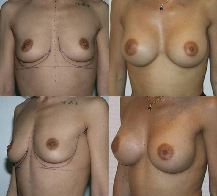 Le résultat définitif d’une augmentation mammaire se juge après 3 à 6 mois, lorsque l’œdème a disparu et que la prothèse s’est assouplie. Les cicatrices axillaires s’estompent progressivement, devenant peu visibles au fil des mois.