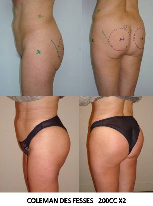 La ré injection de graisse est intéressante quand l’augmentation souhaitée de volume des fesses n’est pas trop importante et qu’une bonne lipoaspiration du reste du corps est indiquée. Si les précautions post opératoires sont bien respectées , la prise de greffe est très satisfaisante ; il n’est toutefois pas possible d’affirmer que le volume de graisse transféré prendra en totalité.
