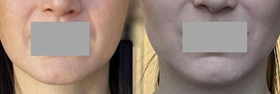 - Par les injections d’acide hyaluronique pour remplir les fossettes qui font une encoche sur l’ovale de part et d’autre du menton.