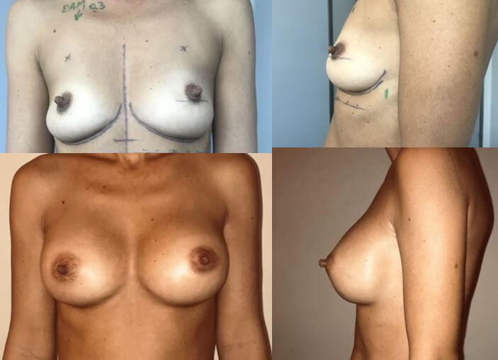 On pratique une plastie mammaire avec pose d’implants mammaires à Marseille (prothèses mammaires ou prothèses de sein) dans le même temps quand le sein est relâché et trop petit.